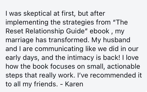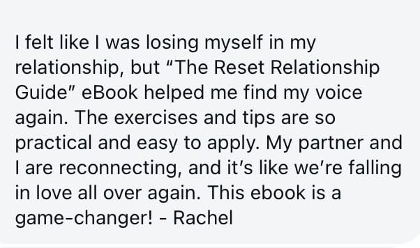 The Relationship Reset is a practical, step-by-step guide that helps you rebuild emotional closeness one small shift at a time - even if communication feels strained and you don't know where to start.